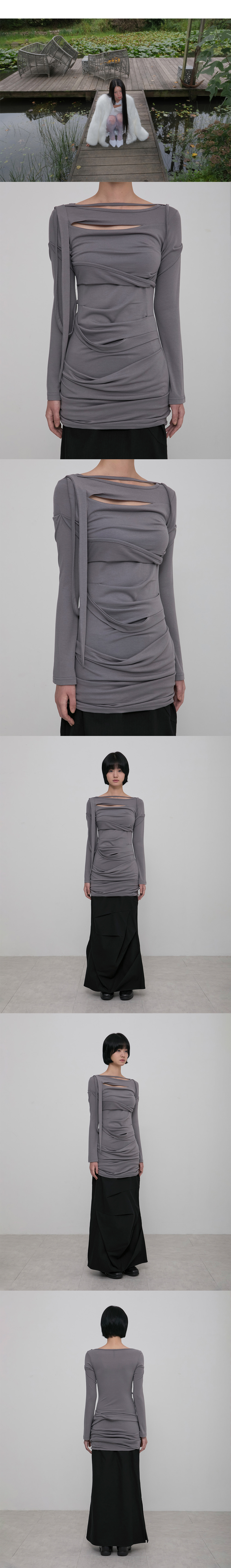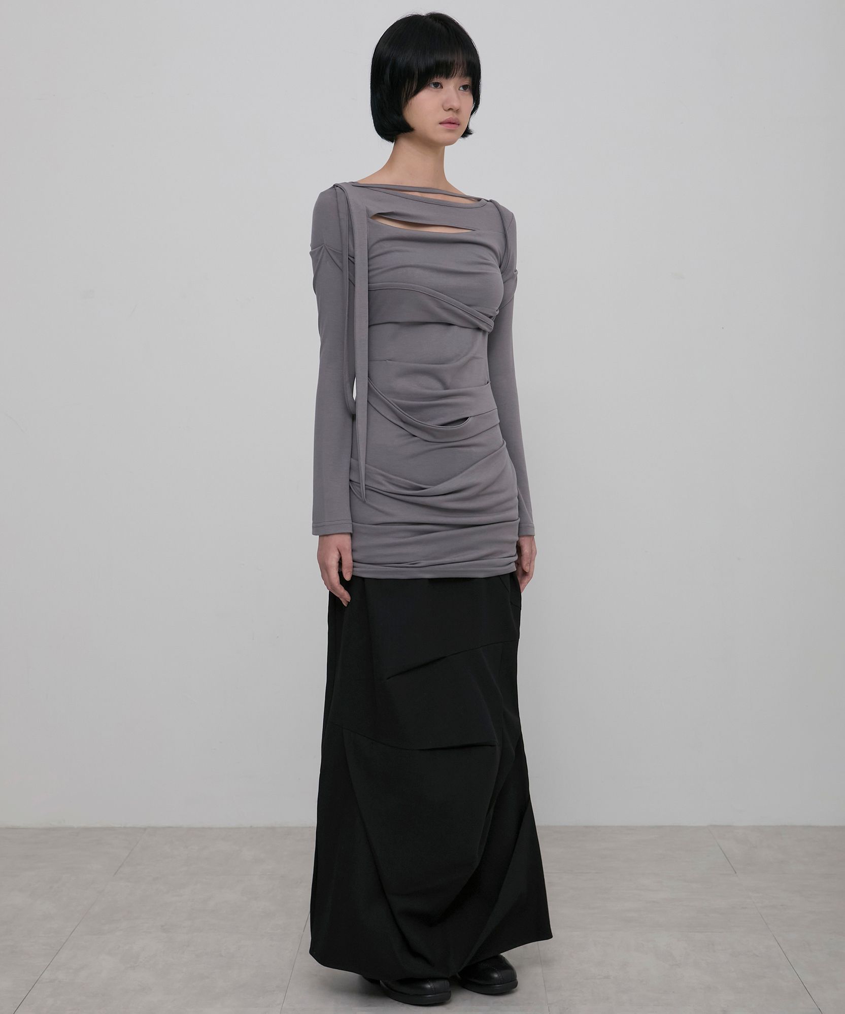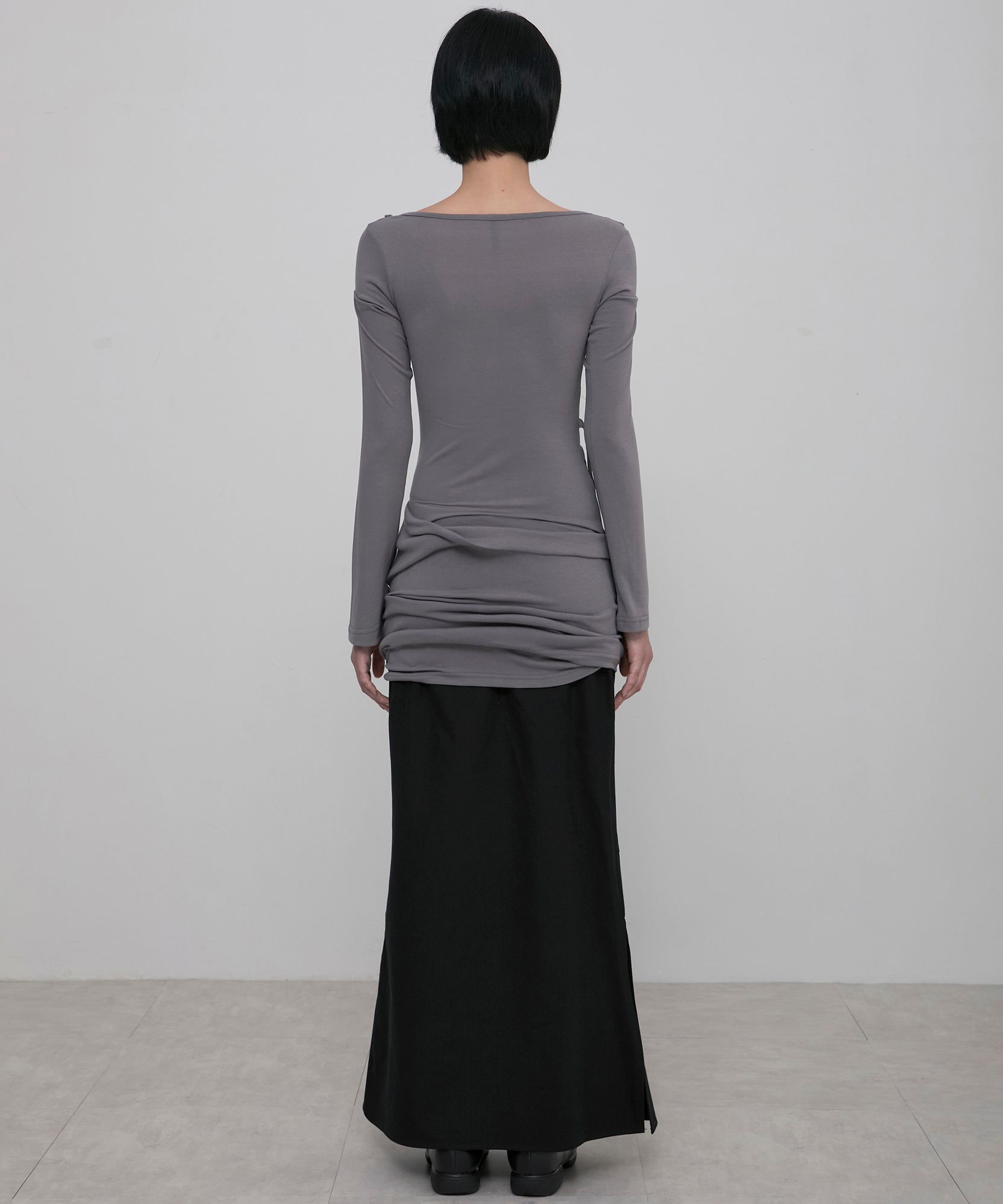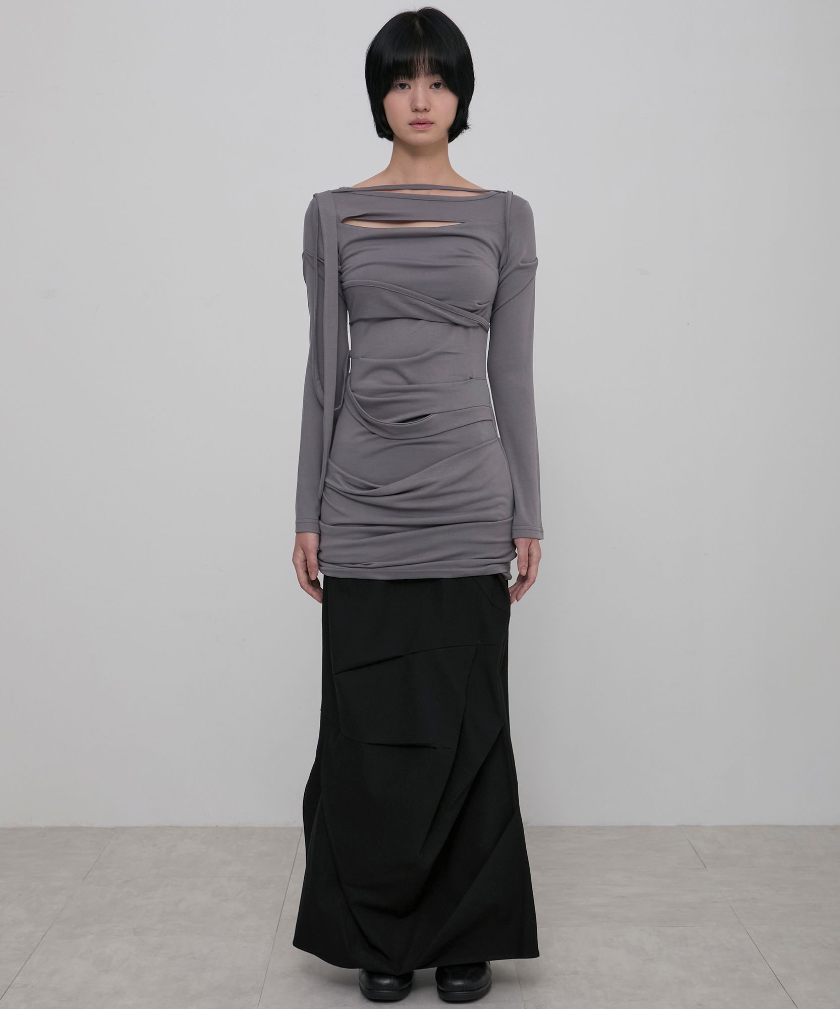Asymmetrical Draped Long Dress (FL-196_Gray)