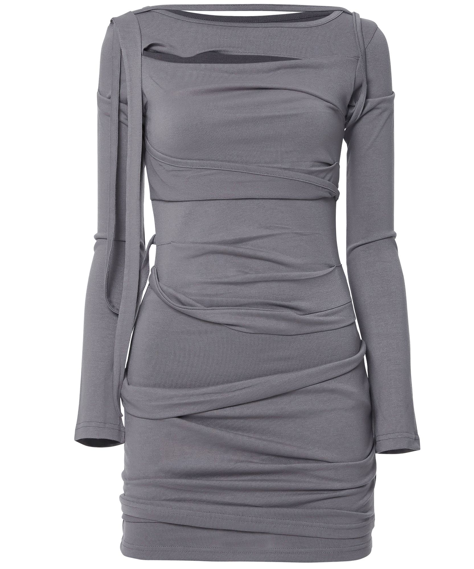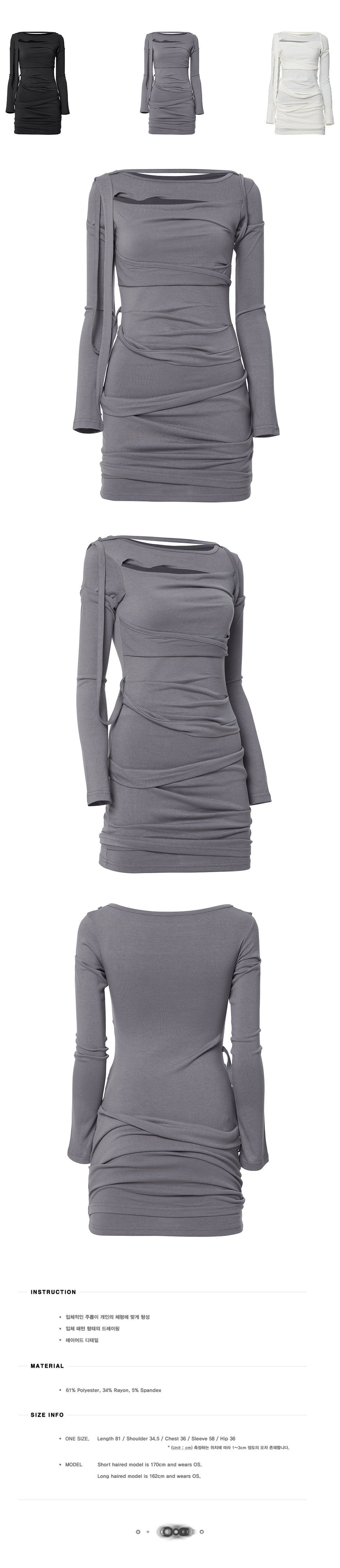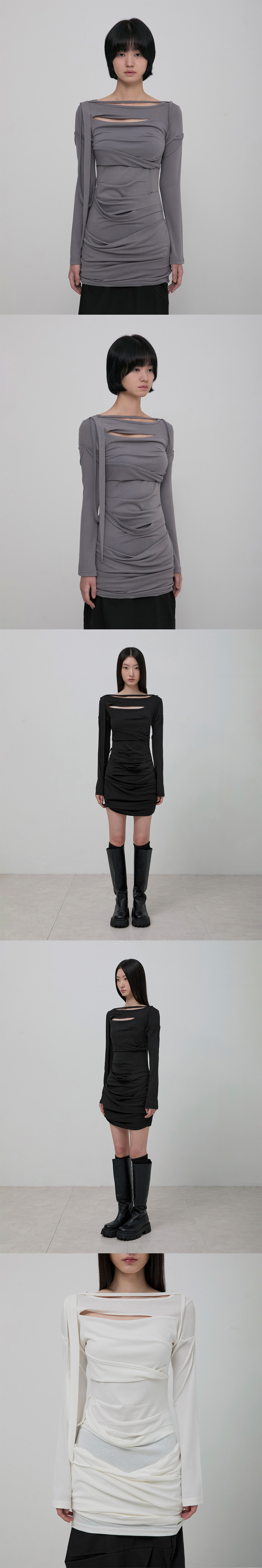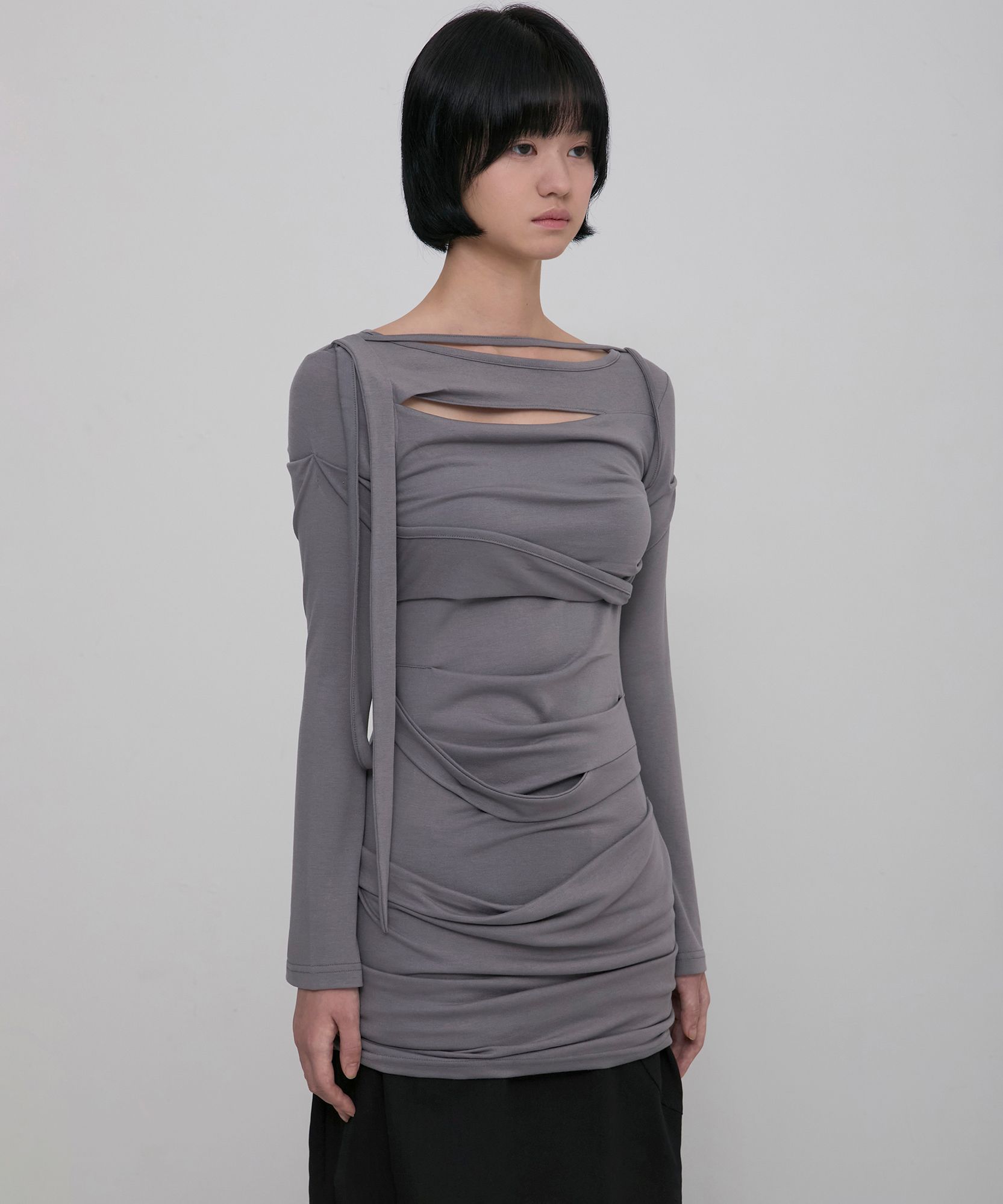 Asymmetrical Draped Long Dress (FL-196_Gray)