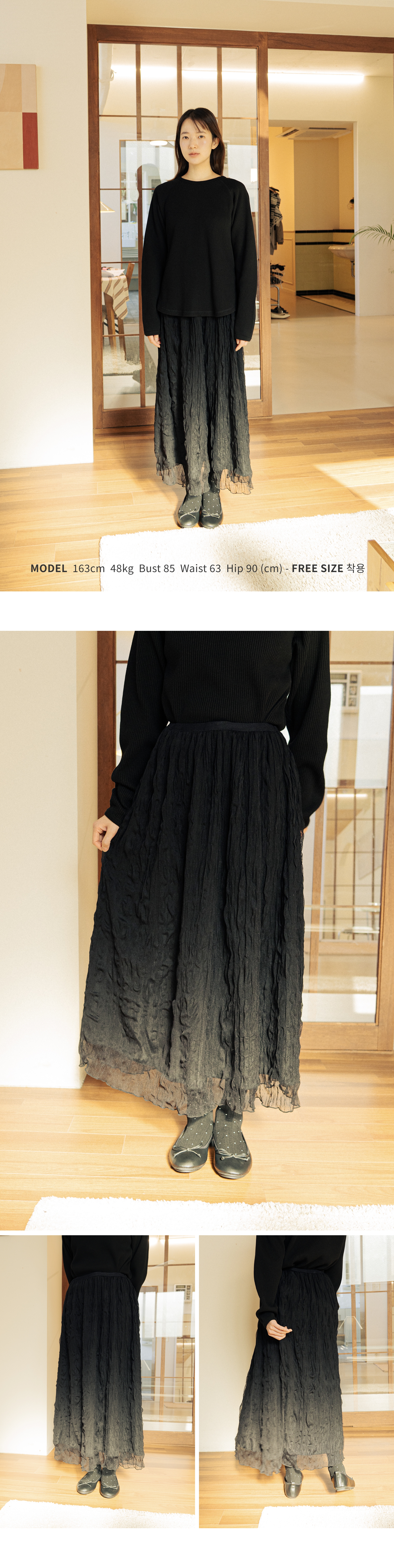 Dot Chiffon Skirt Black