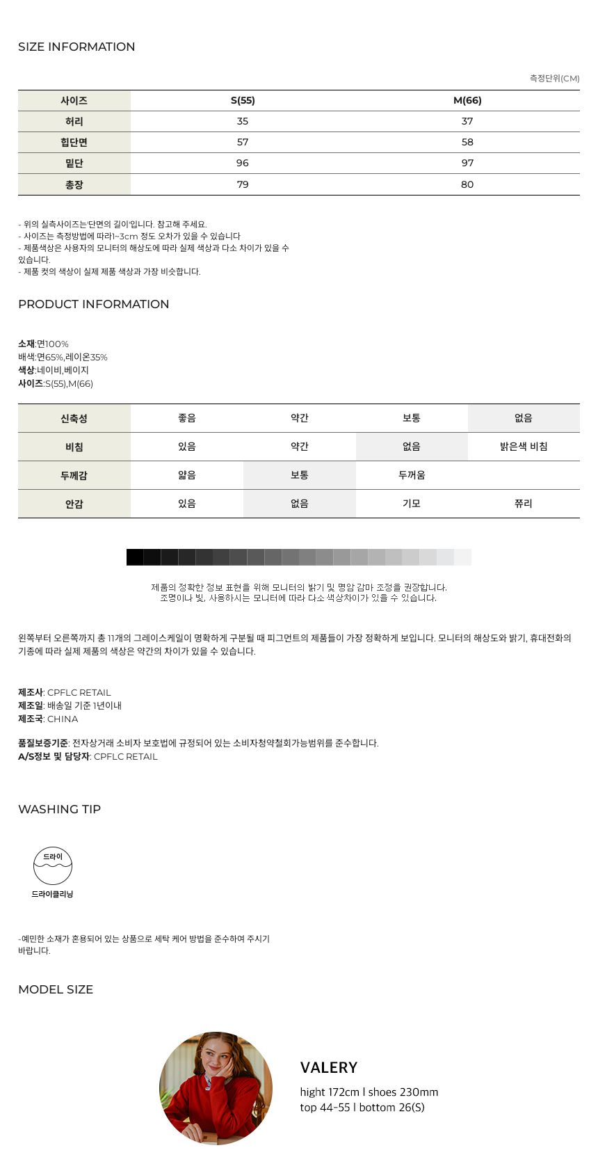 • Composition: 100% cotton color blocking: 65% cotton, 35% rayon