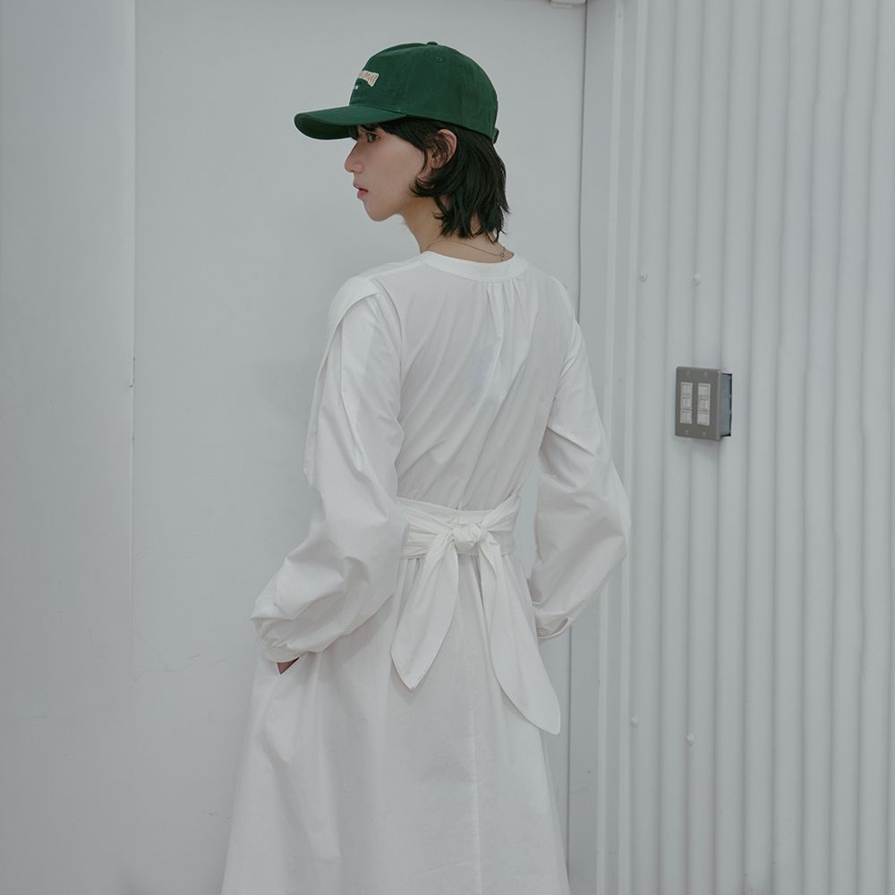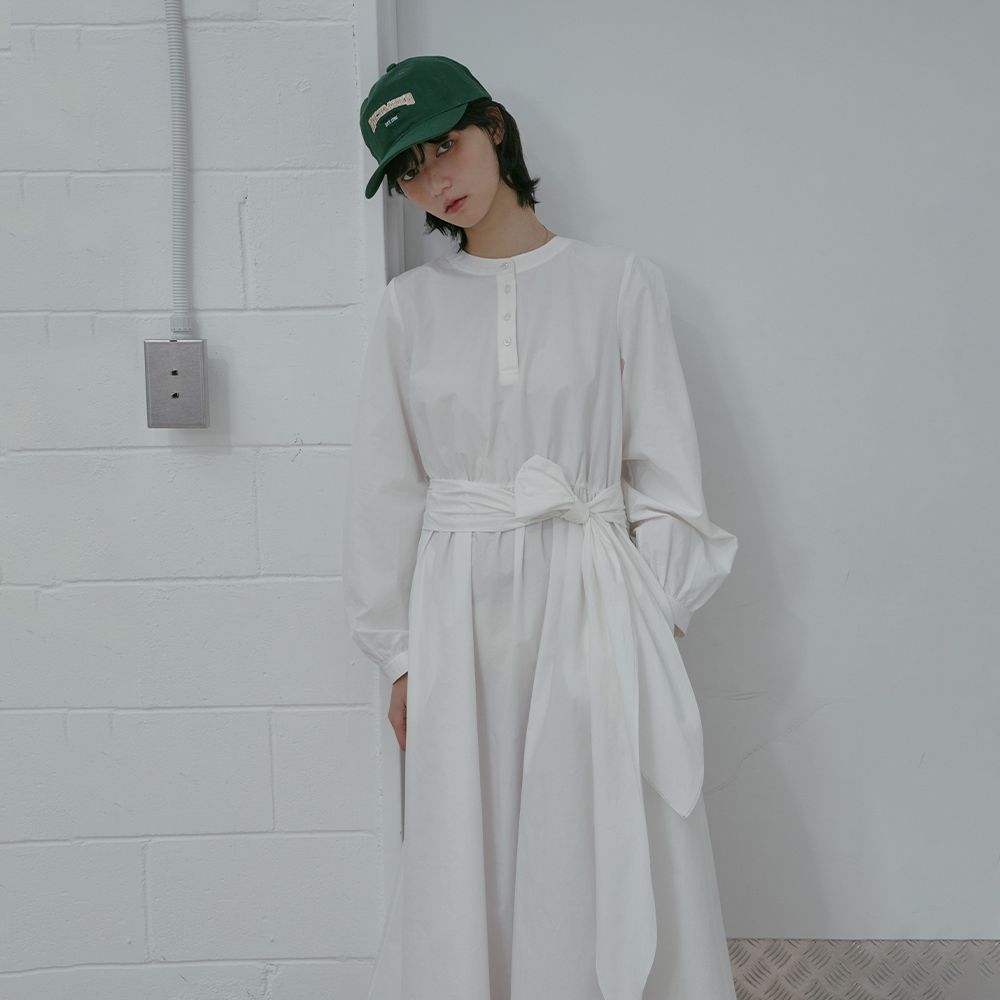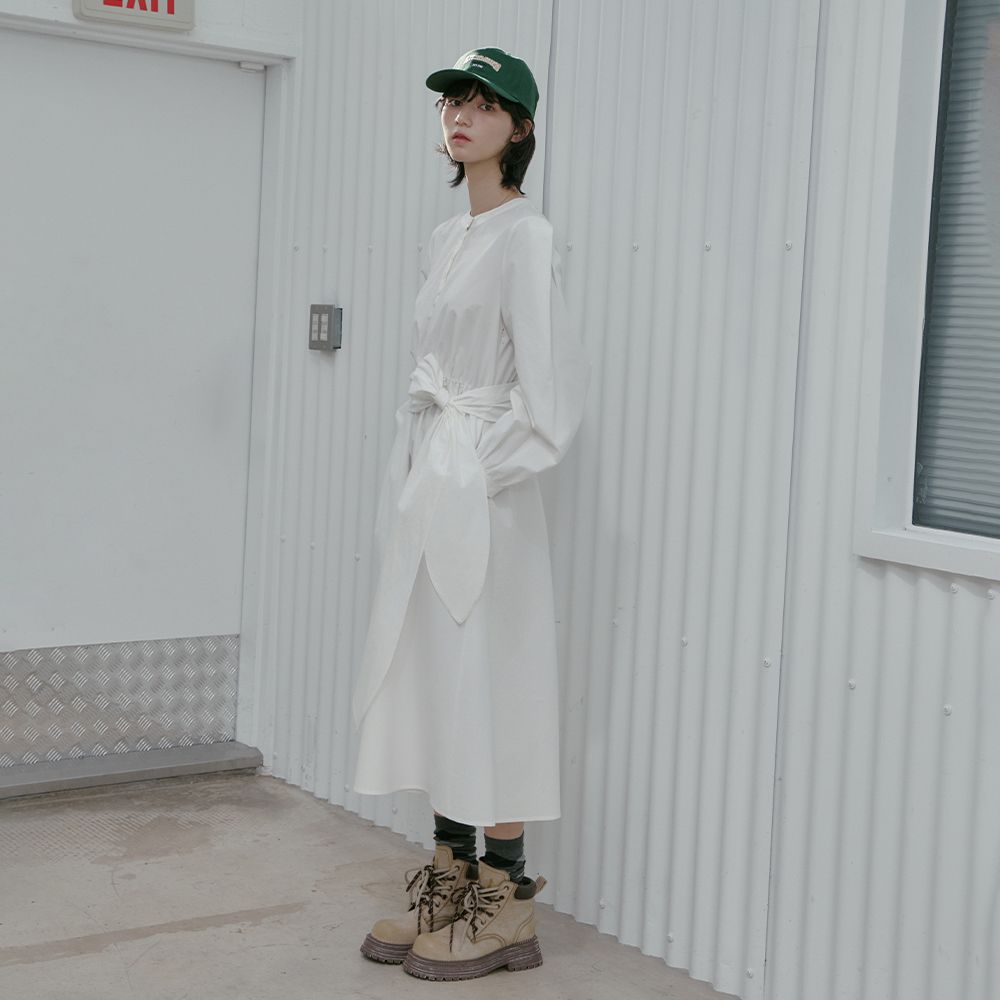 Henley Neck Waist Tie Long Dress AS1WO262