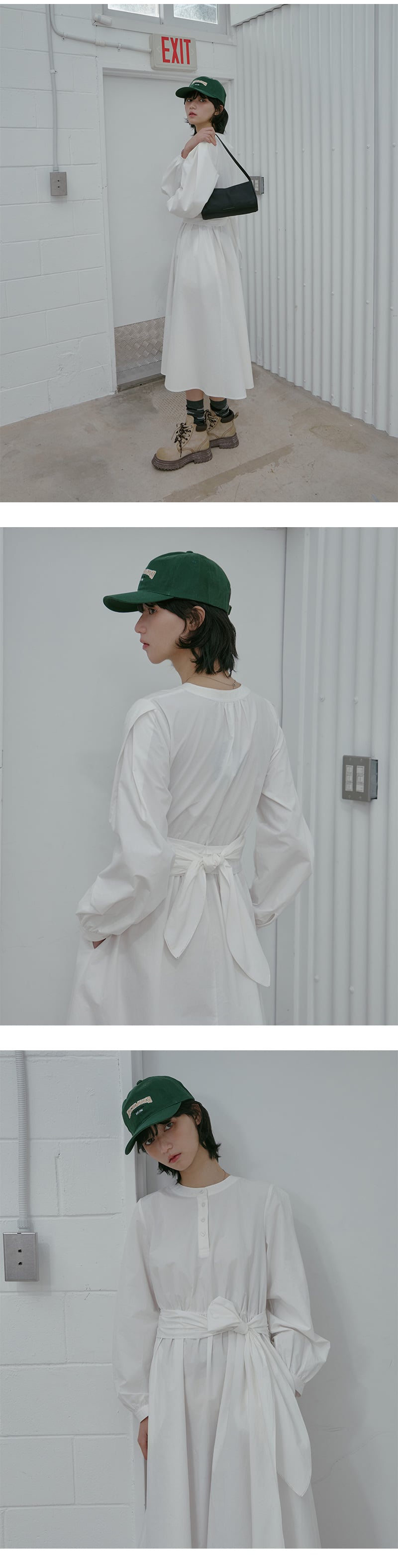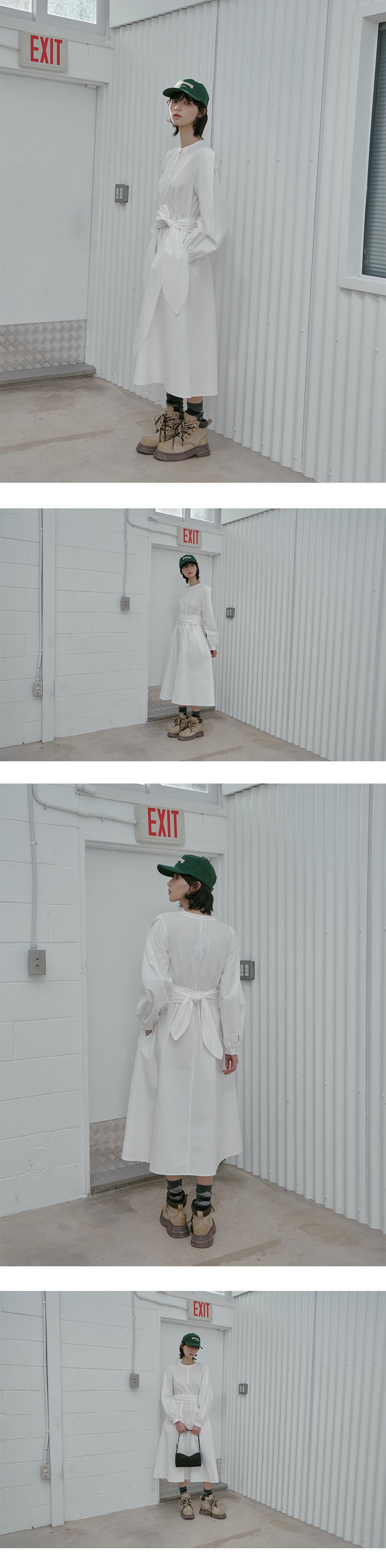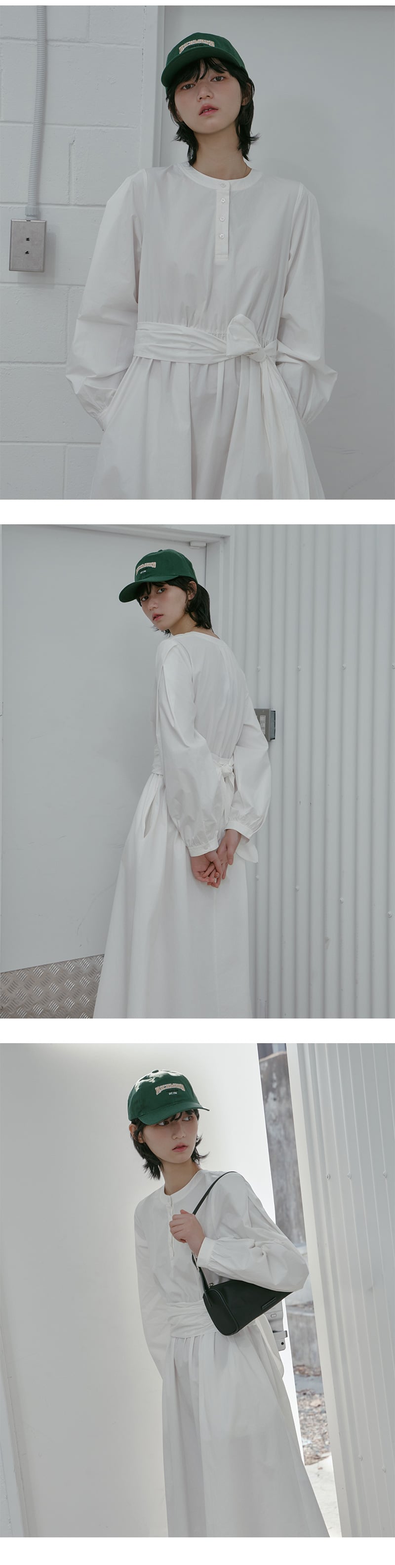 Henley Neck Waist Tie Long Dress AS1WO262