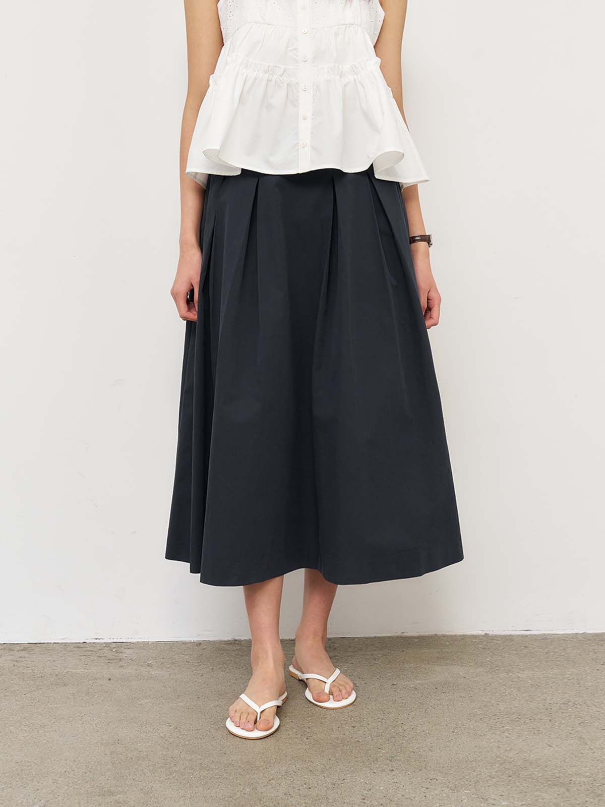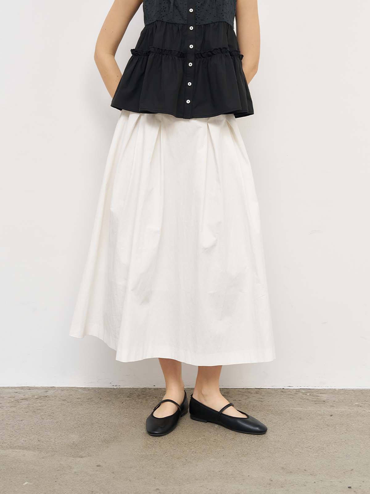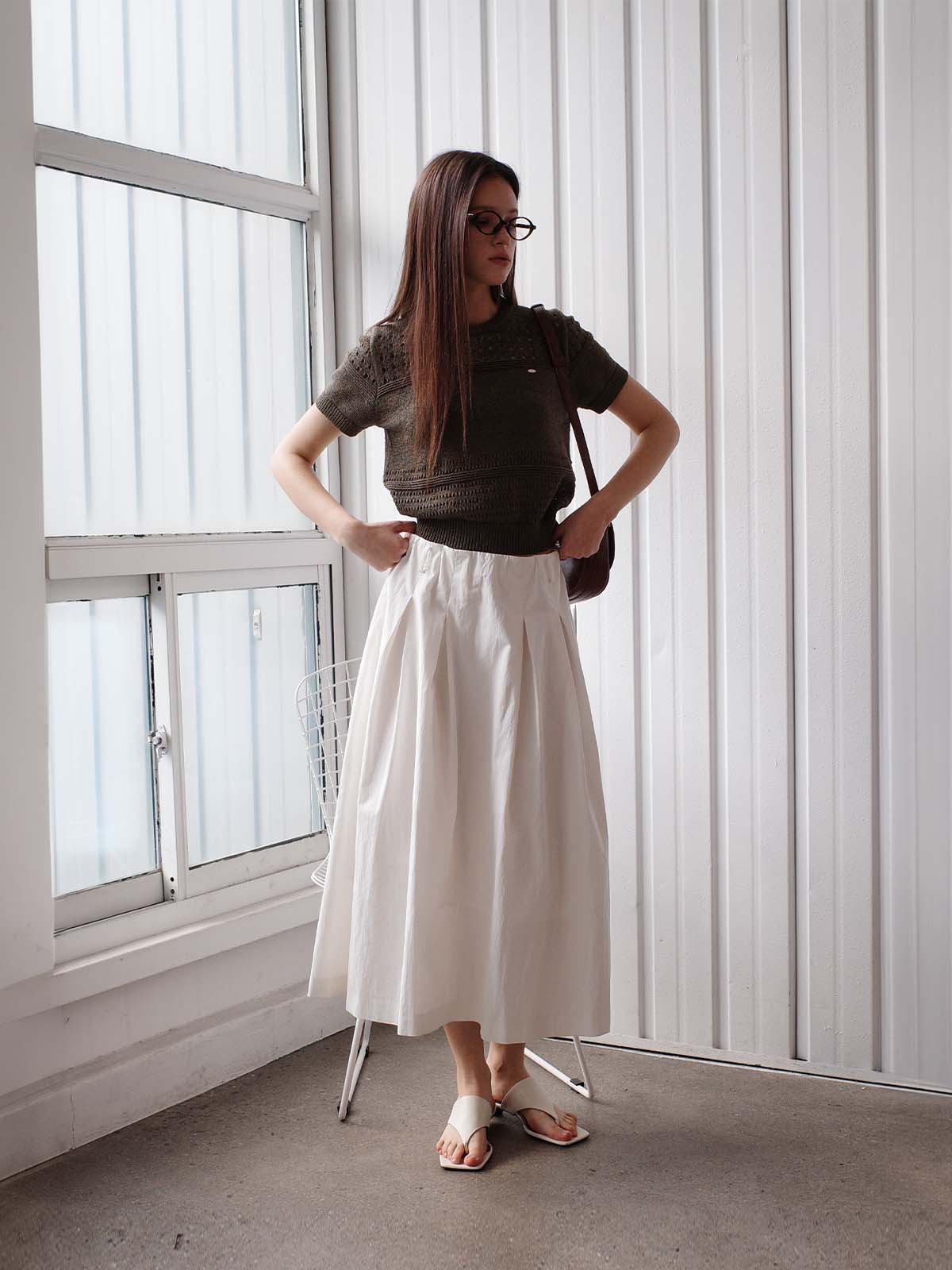 Inverted Pleated Long Skirt [WHITE] / WBE2L13521