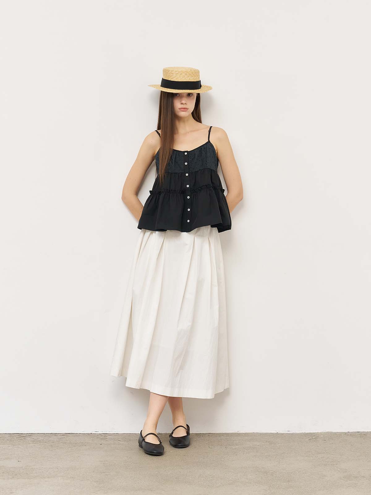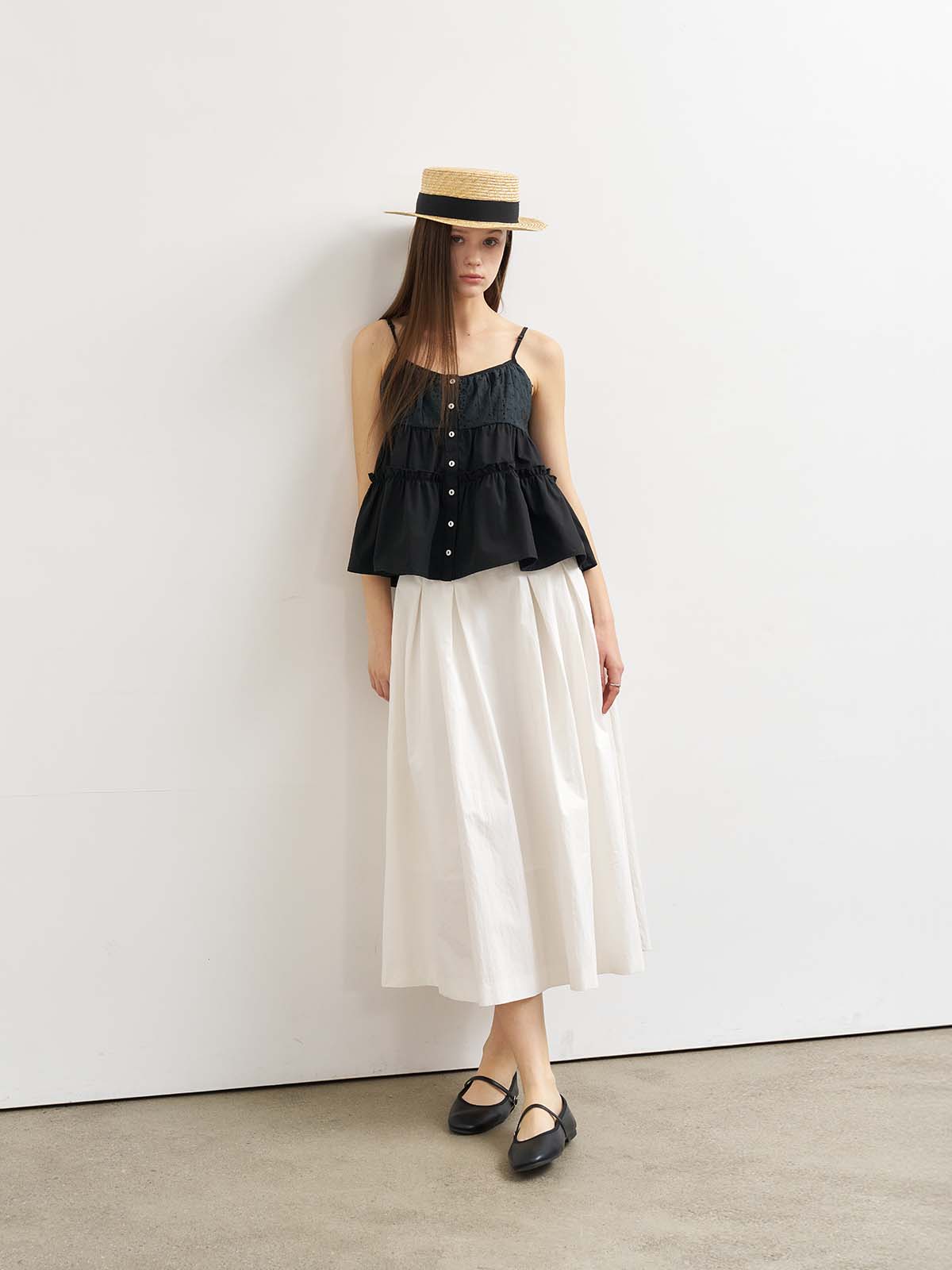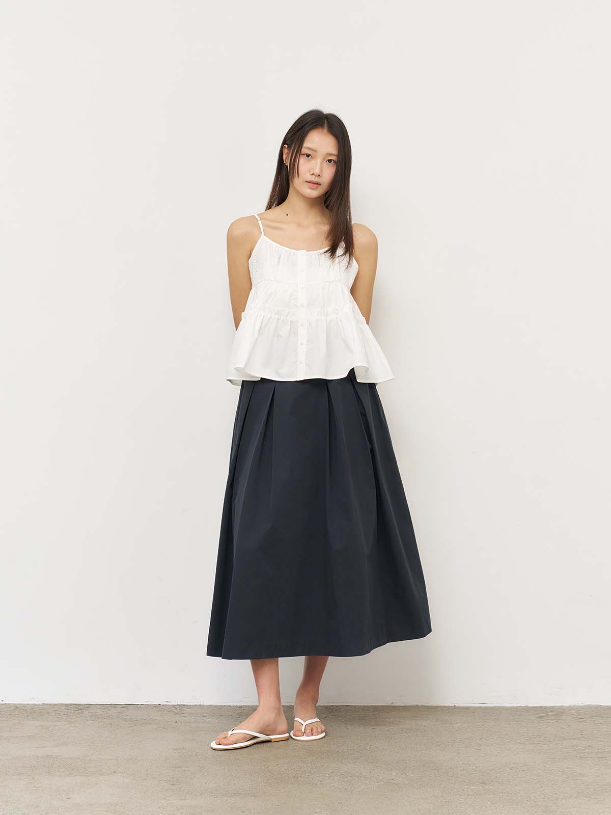Inverted Pleated Long Skirt [WHITE] / WBE2L13521