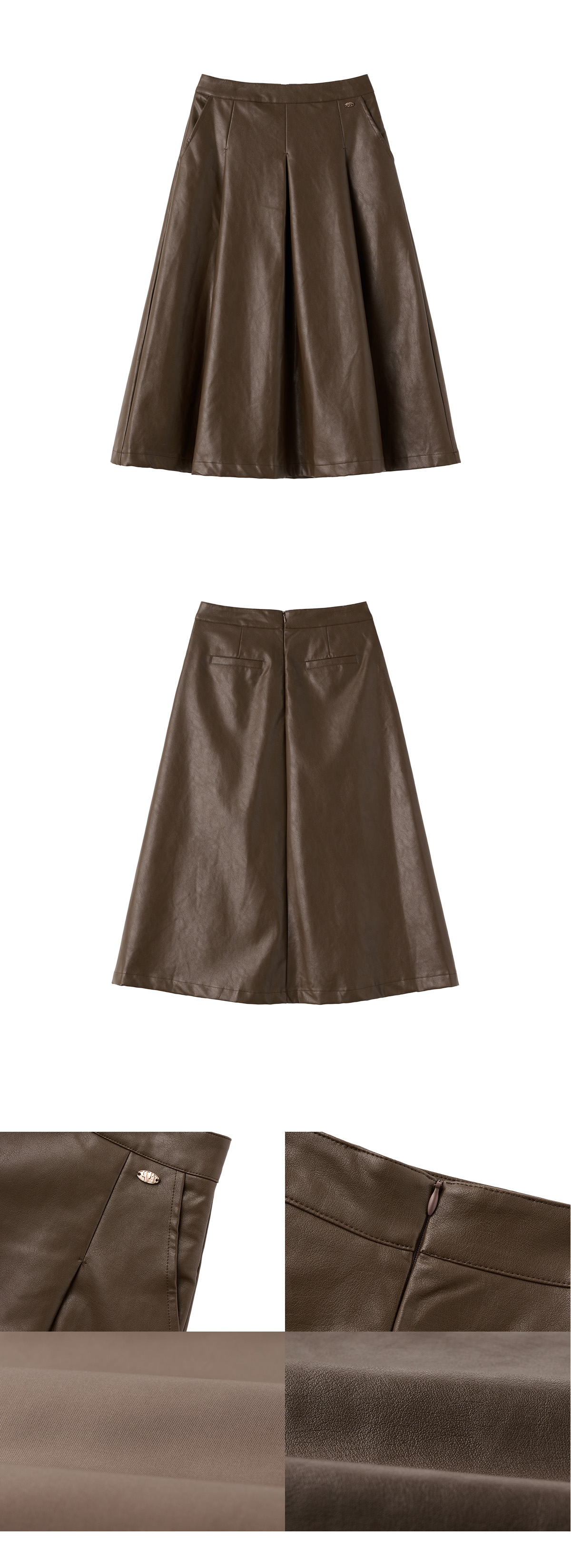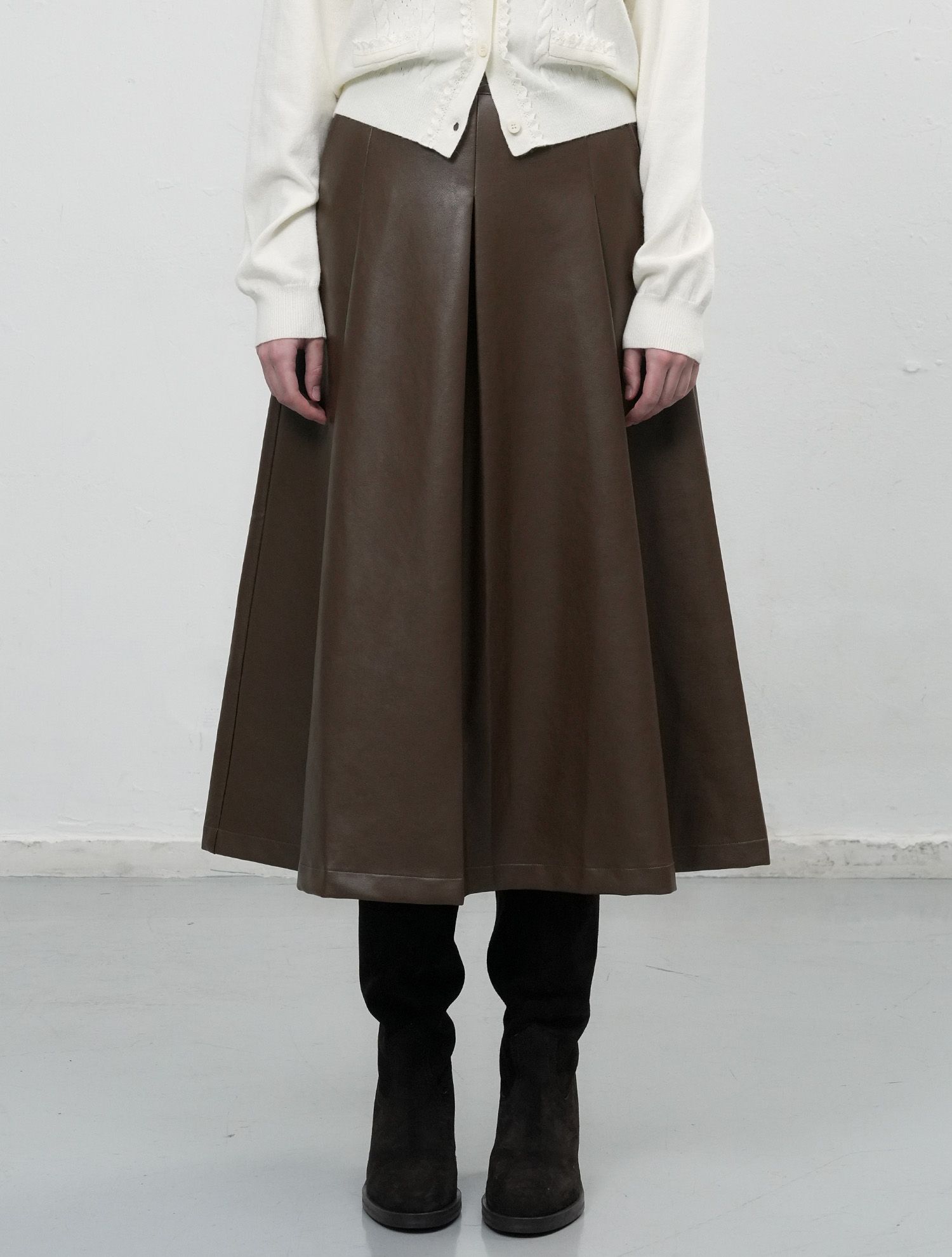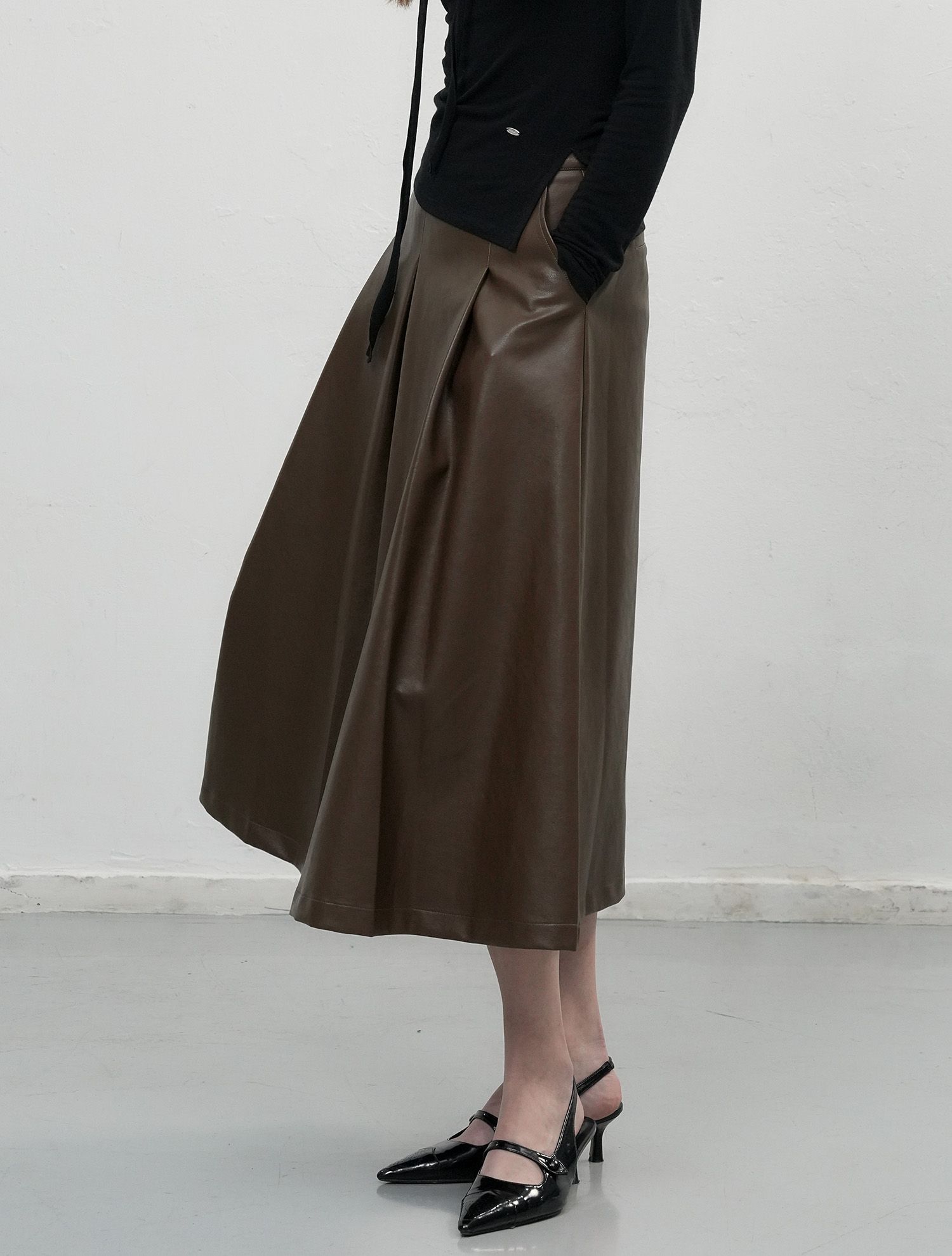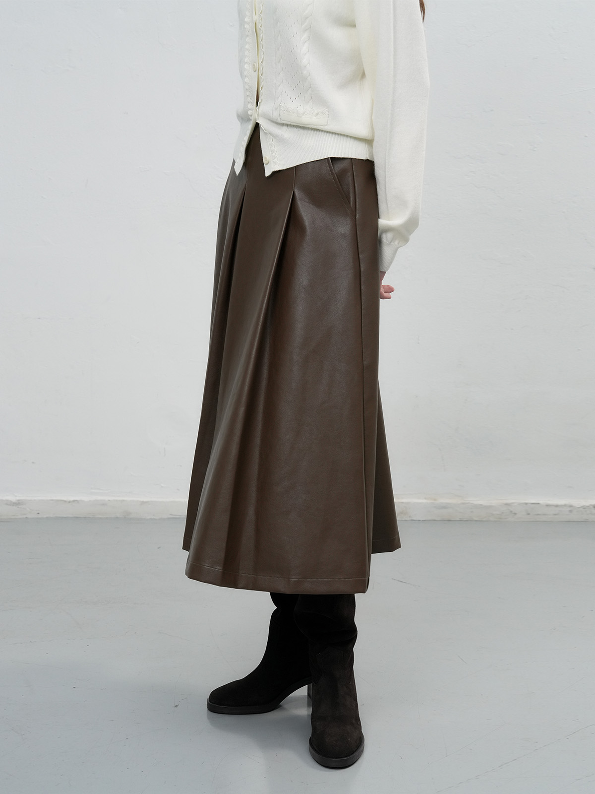 Pleated Fake Leather Long Skirt [BROWN] / WBE3L13501