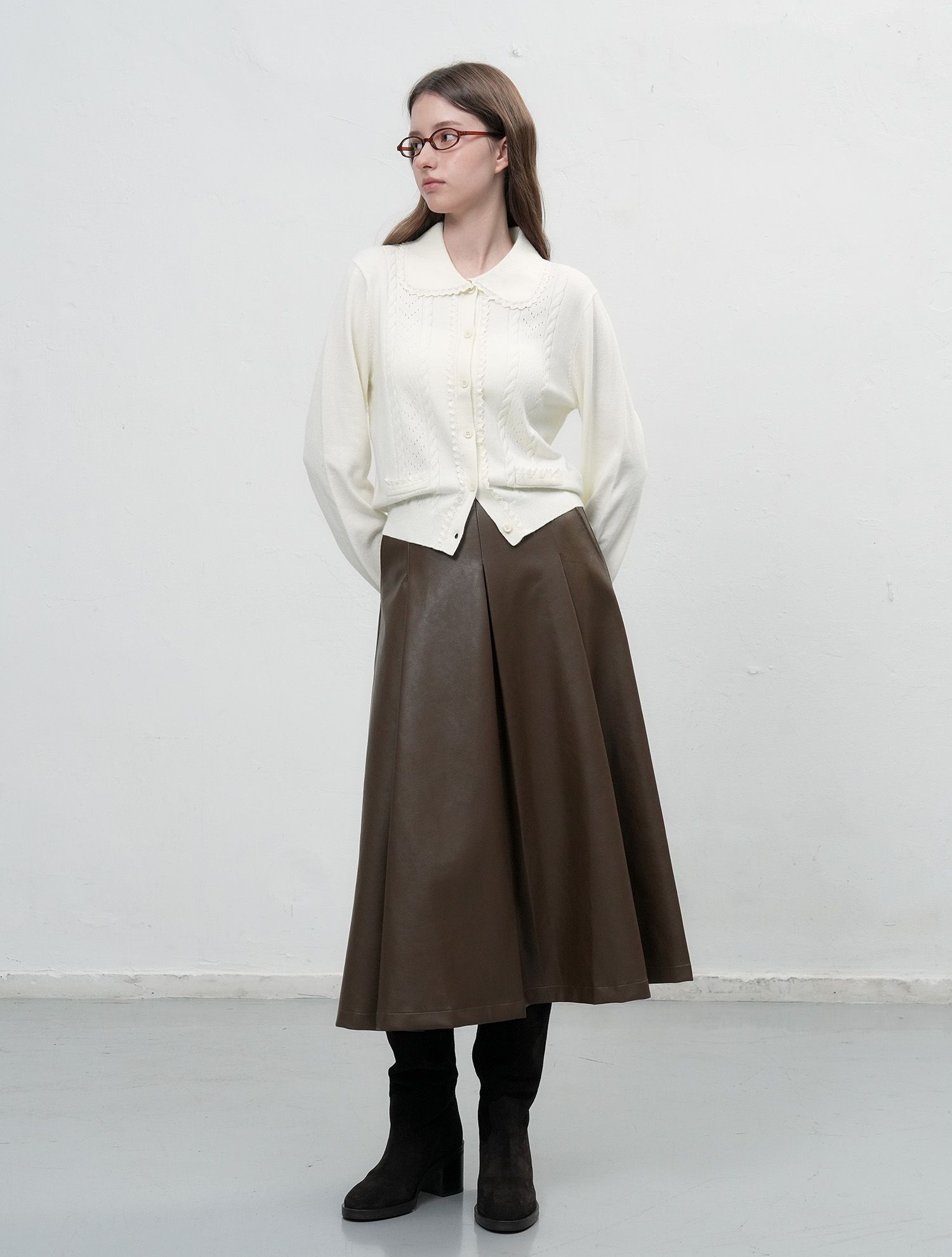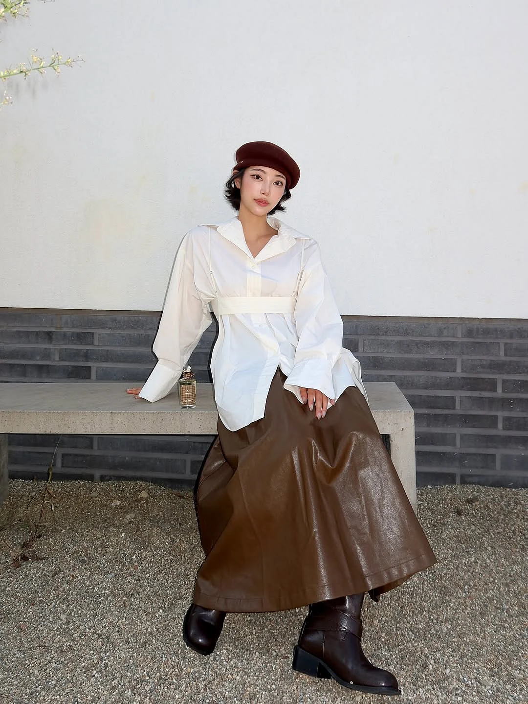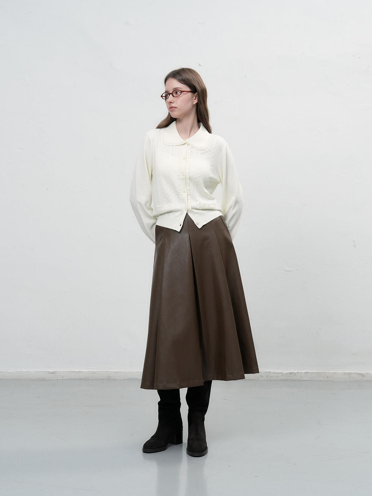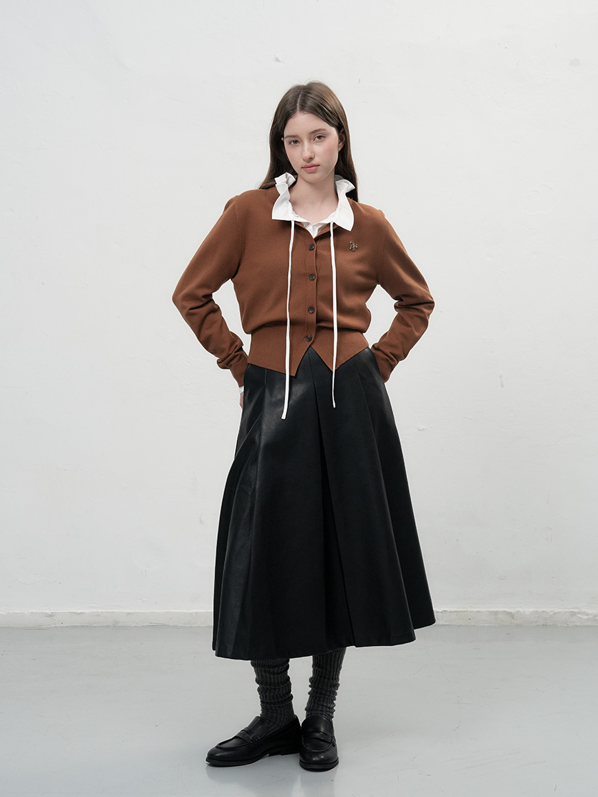 Pleated Fake Leather Long Skirt [BROWN] / WBE3L13501