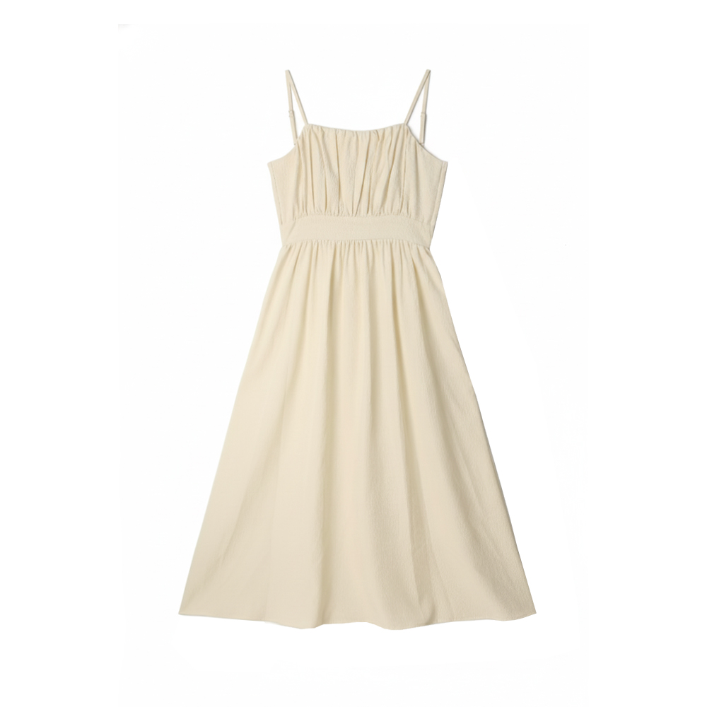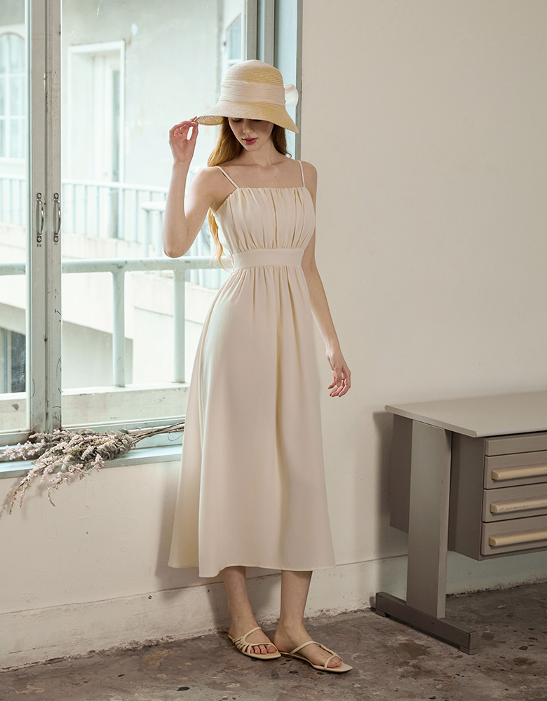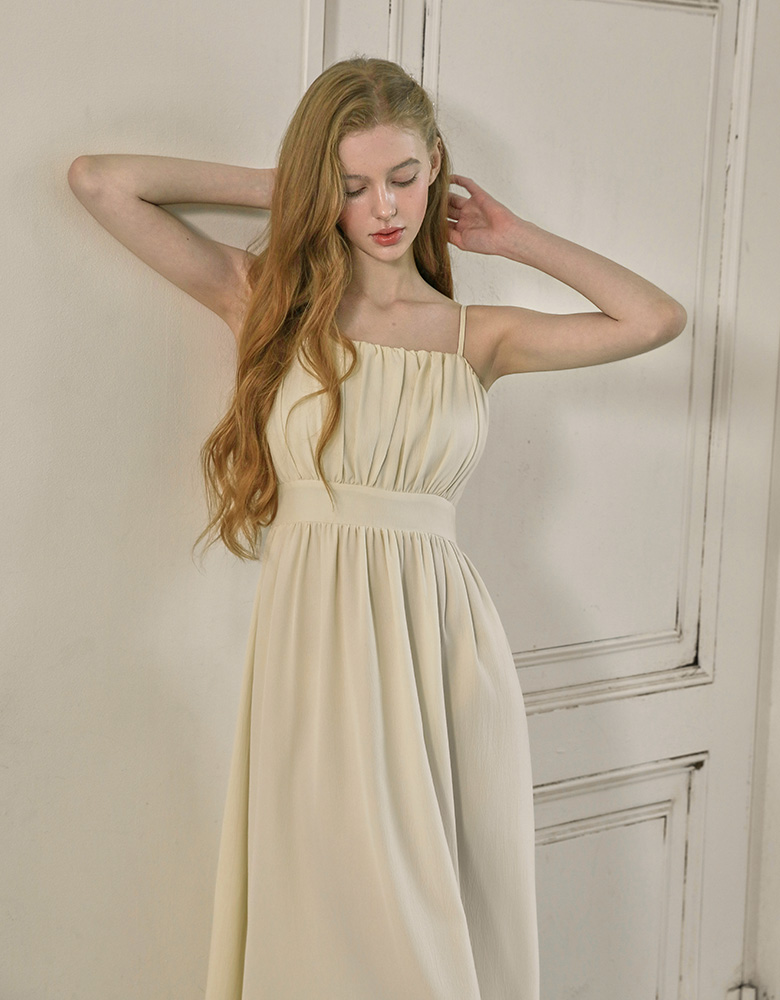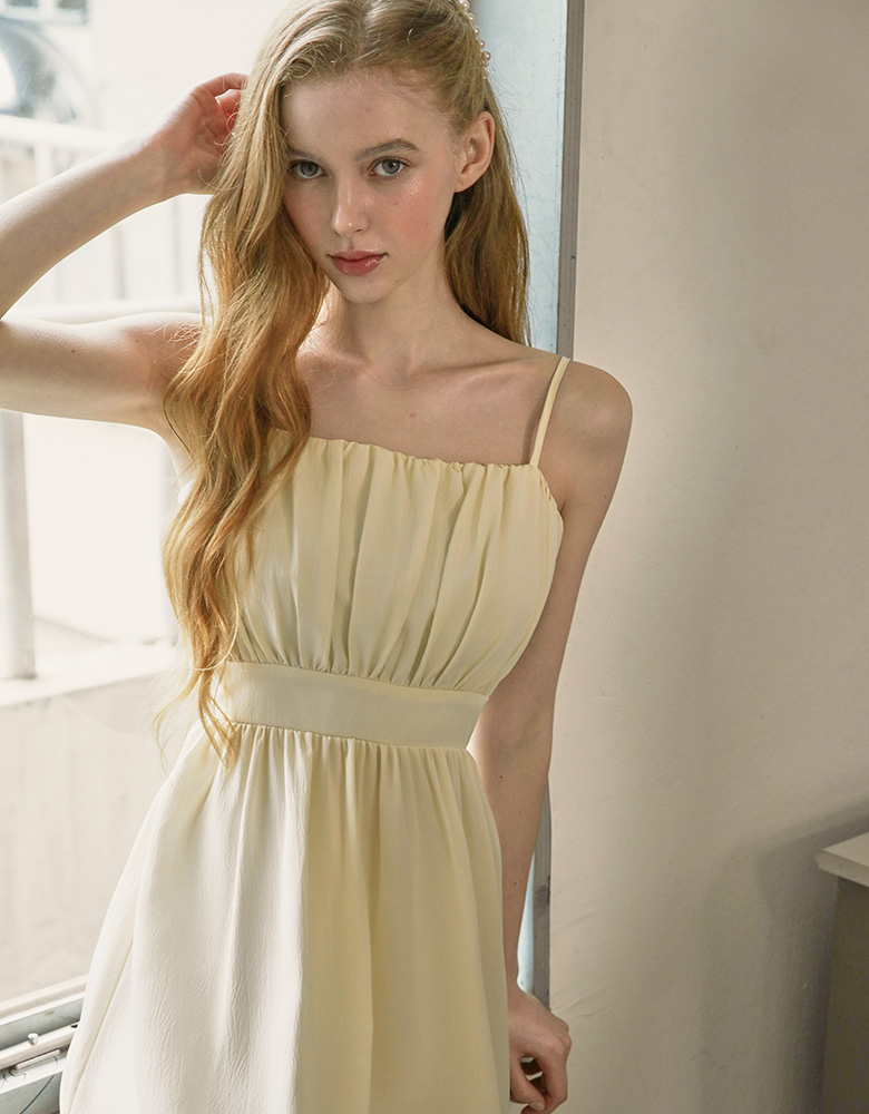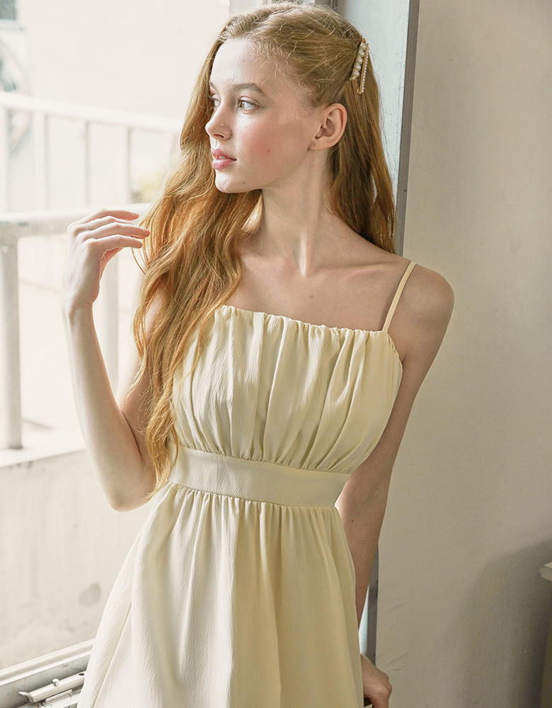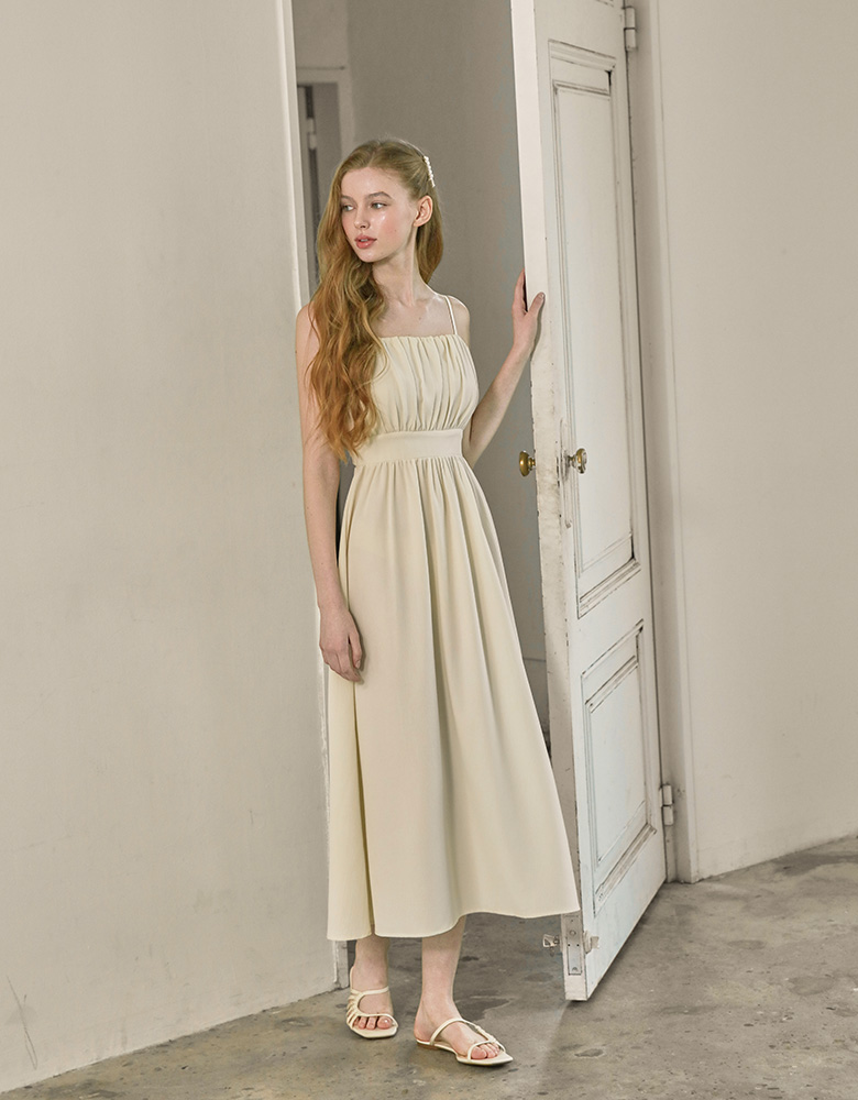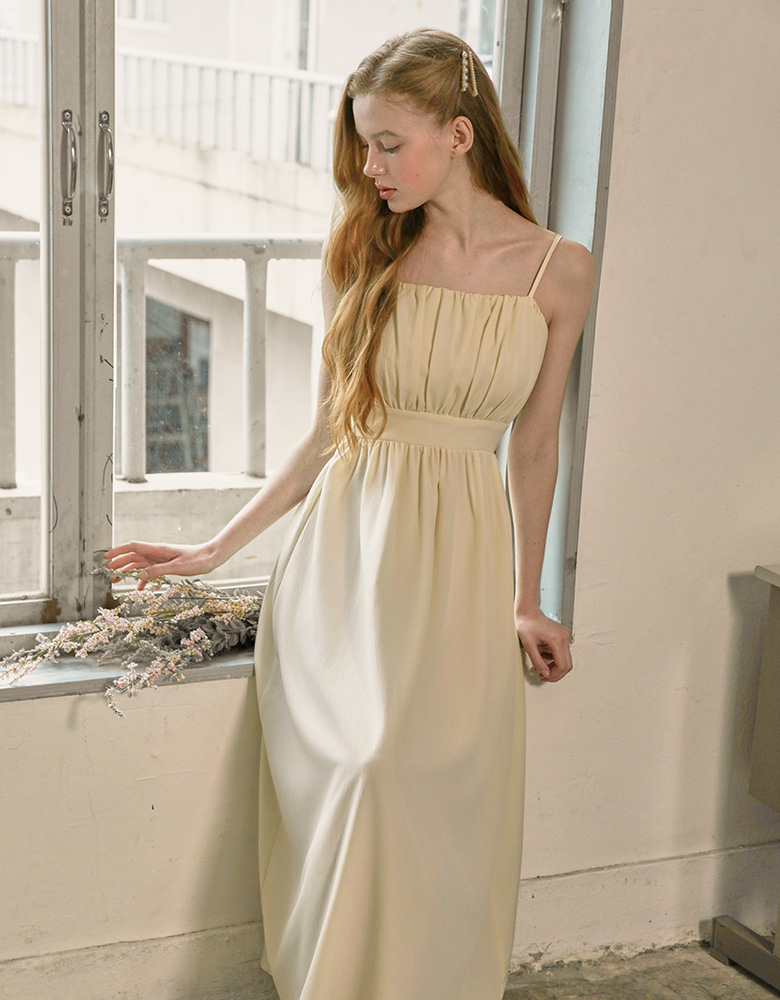 Rachel Shirring Backpoint Long Dress - Cream Yellow