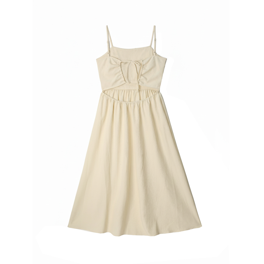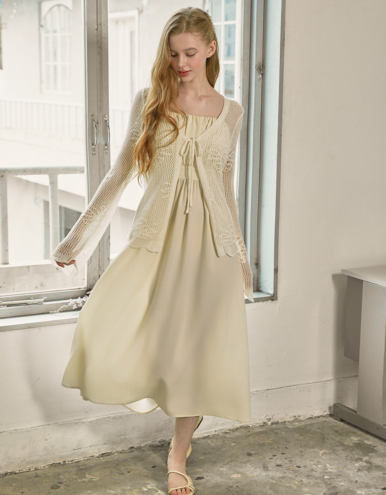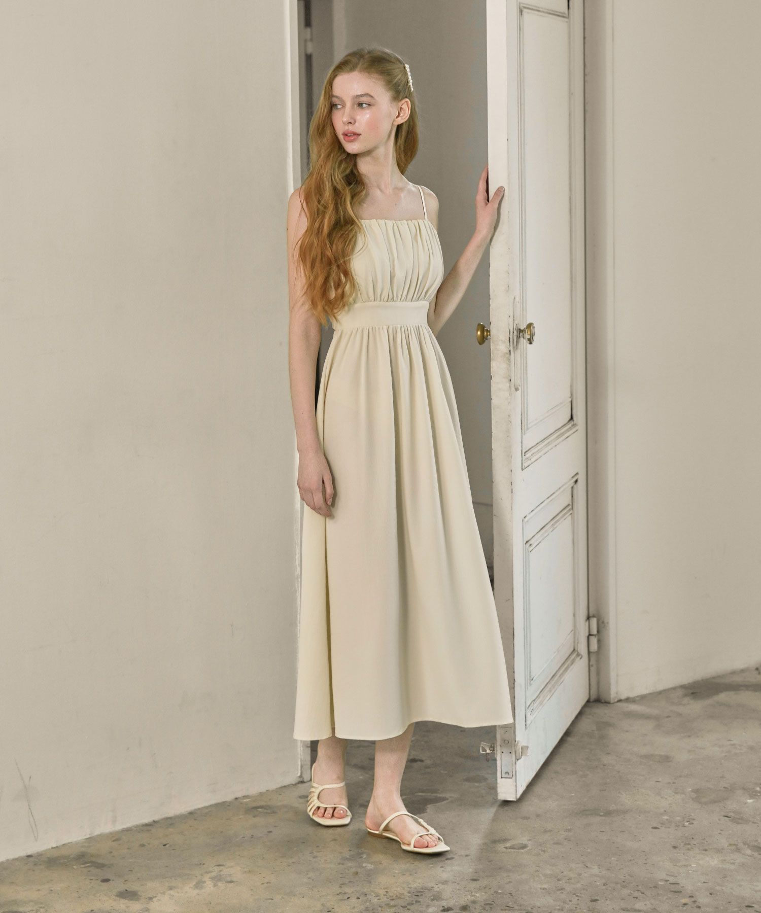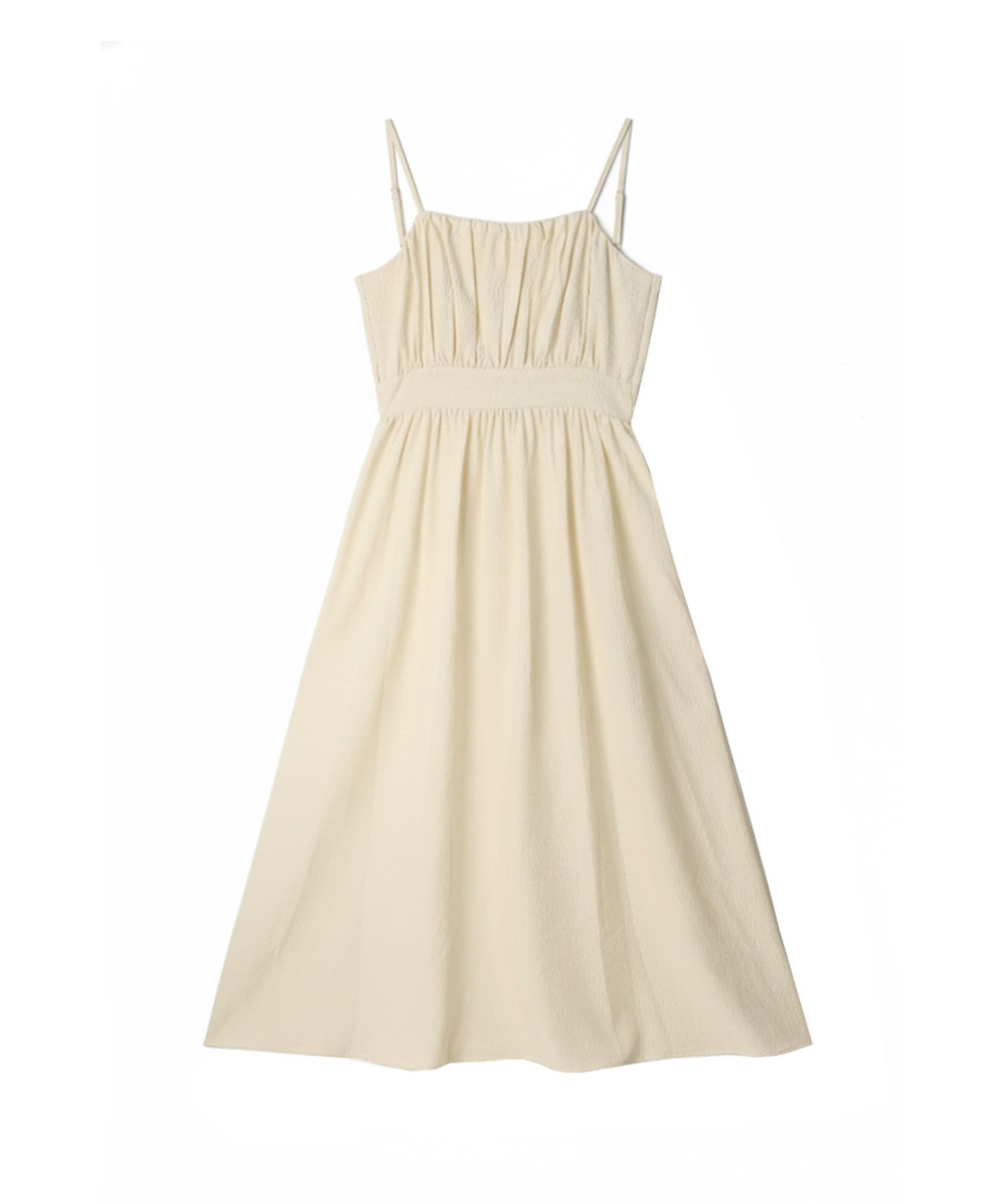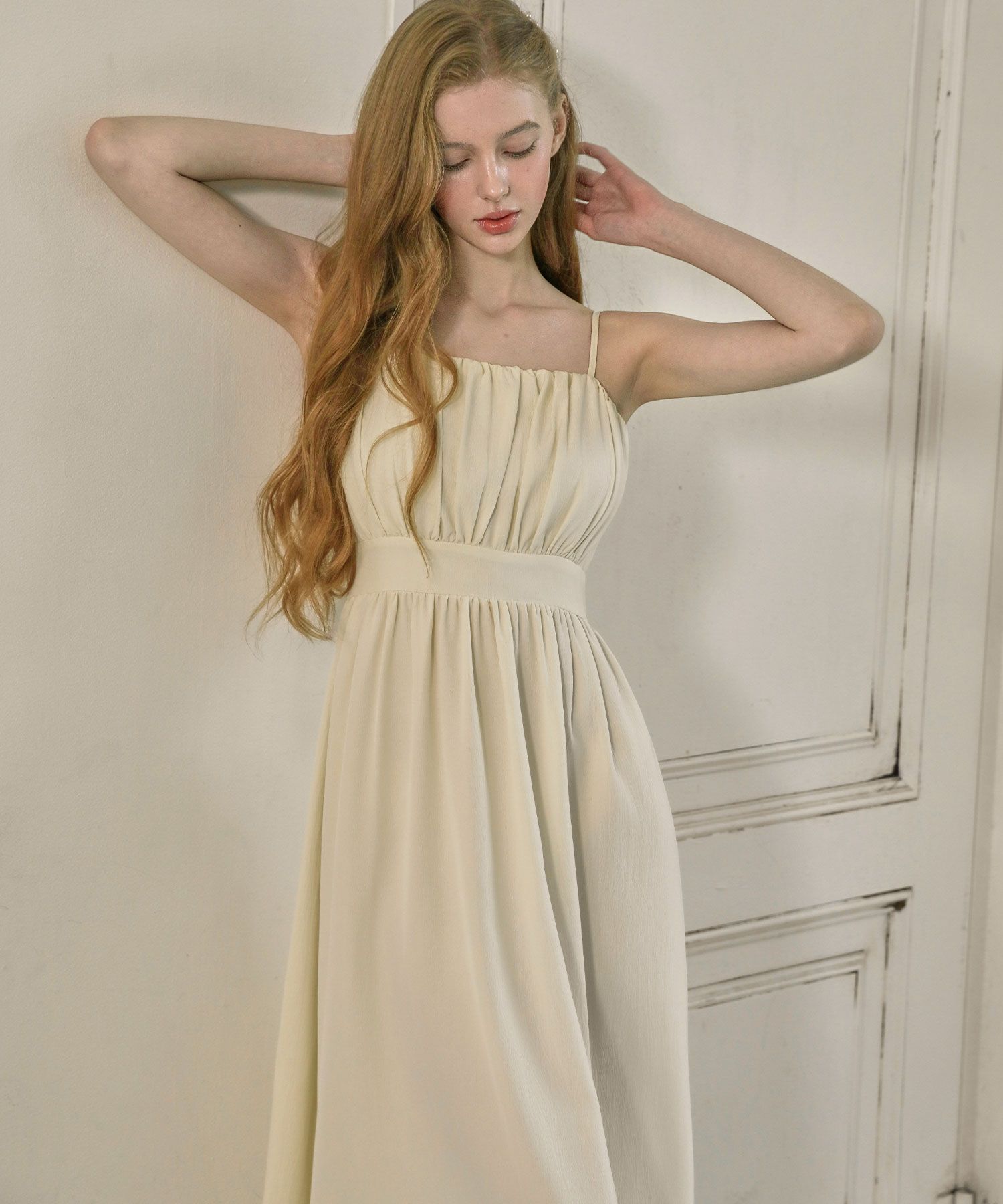 Rachel Shirring Backpoint Long Dress - Cream Yellow